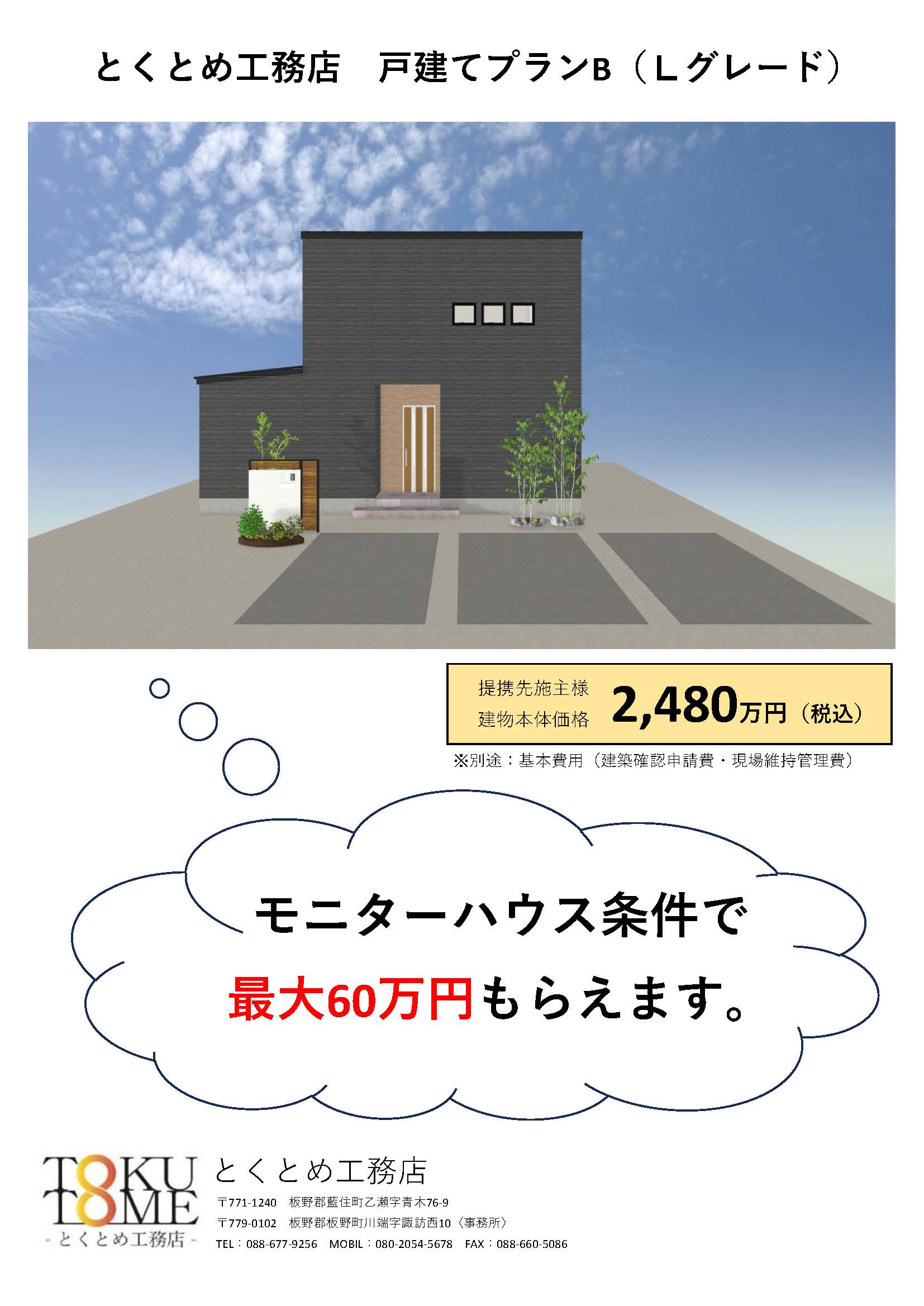 ▼ モニターハウス条件で最大60万円もらえます。